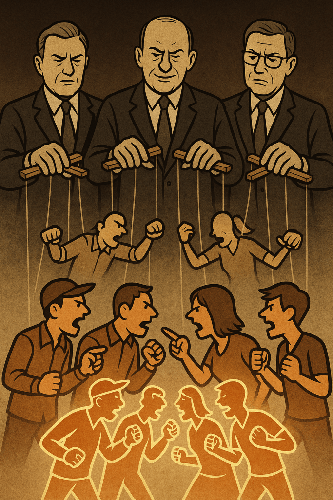 Why let people come together when you can convince them that their neighbor is the problem? Social media is a corporate-sponsored WWE match: red vs. blue, left vs. right, Gen Z vs. Boomers, meanwhile the real referee (corporate elites) is cashing in on ticket sales.